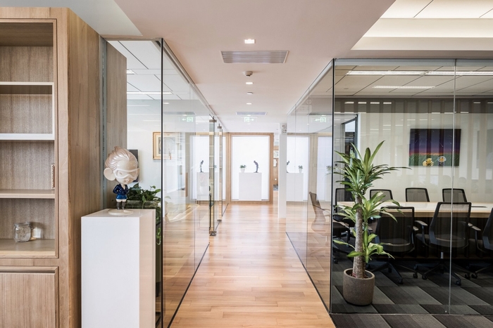 面(miàn)積:1500m2,本方案運用現代時尚風格,材質多爲木飾紋材質和鋼化玻璃,整個辦公環境透明化,有助于工作的互相合作與溝通。